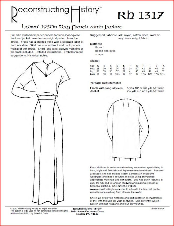 Rc1317 1930s Day Dress And Jacket Sewing Pattern By Etsy